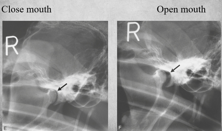 in the closed mouth image the luxation is difficult to discern but in the open mouth view its obvious