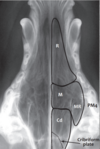 Caudally displaced hyoid apparatus.