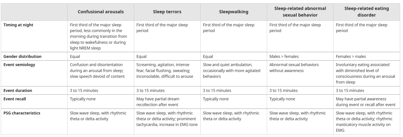Clinical features of non-rapid eye movement (NREM) parasomnias in adults
