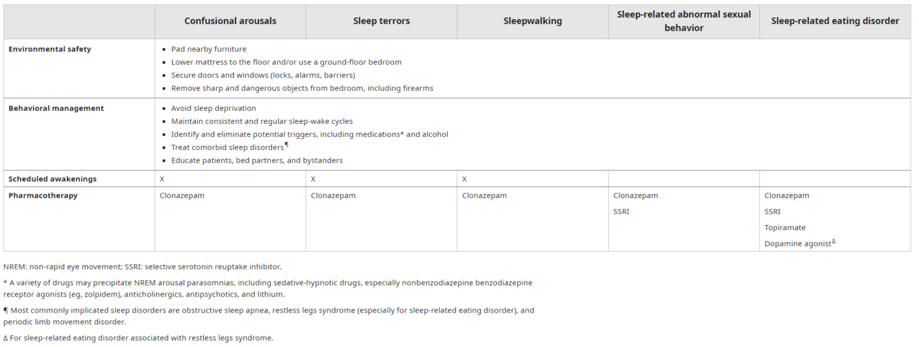 Management of non-rapid eye movement (NREM) parasomnias in adults