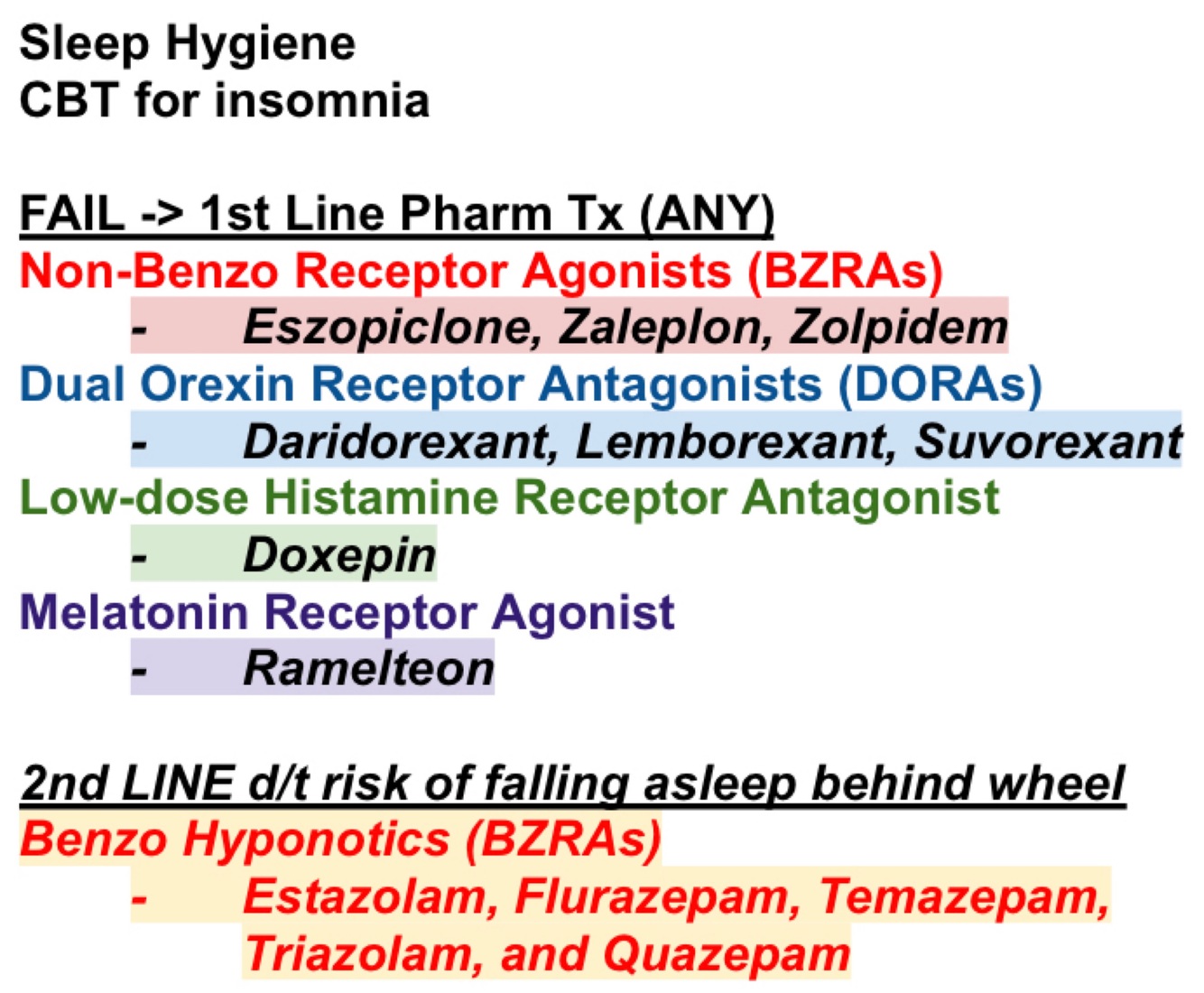 1st line Pharm Tx options for Insomnia
