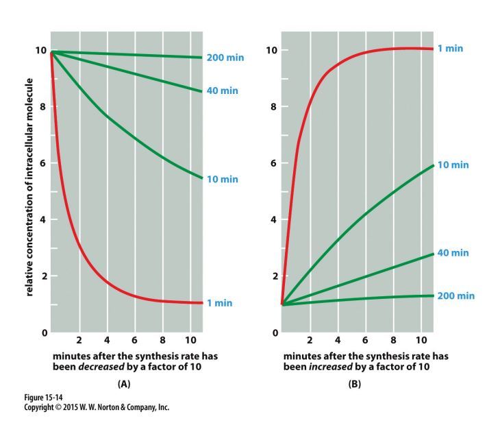 response decreases at a rate that depends (in part) on the turnover rate of intracellular intermediates