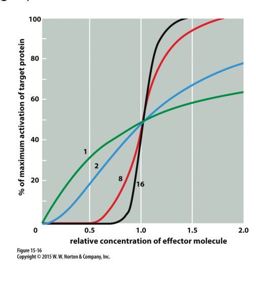 activation curves for an allosteric protein as a function of effector molecule concentration