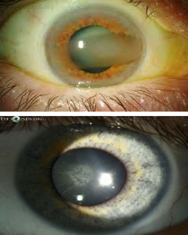 * Corneal edema, band keratopathy