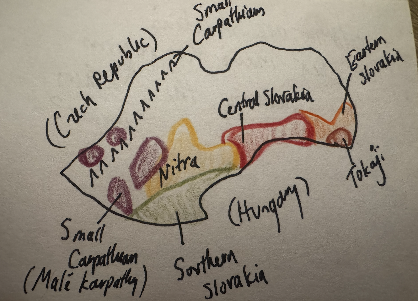 What are Slovakia’s six main wine regions spanning the Southern border?