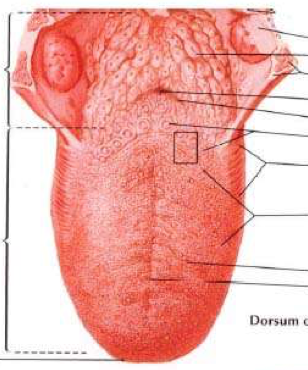 v-shaped junction between 2 parts of tongue from different embryological origins