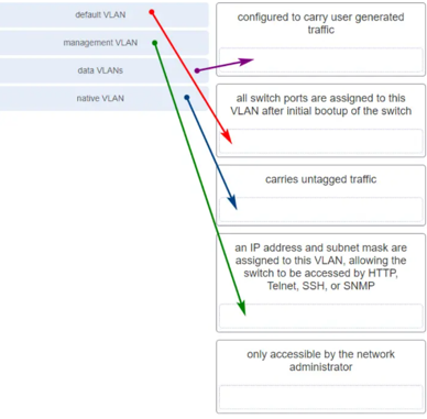 Match the description to the correct VLAN type. (Not all options are used.)