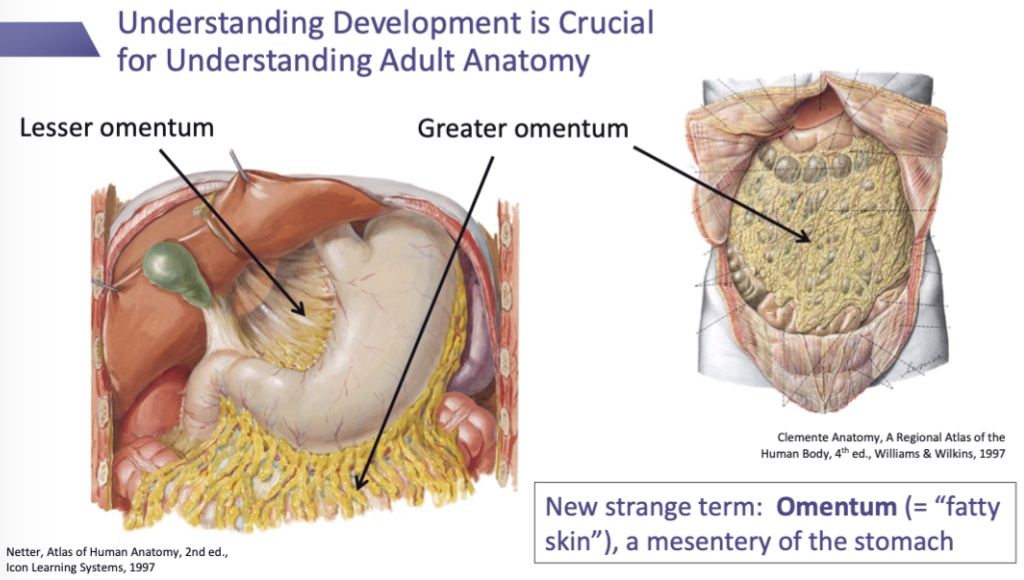 ____ forms in a bag of ____ of the foregut that continues to grow down over the intestines as the greater omentum