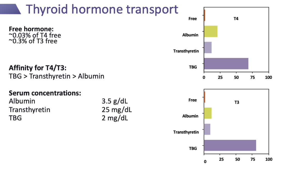 TBG has greatest affinity for T4/T3 but serum concentration of transthyretin is greatest