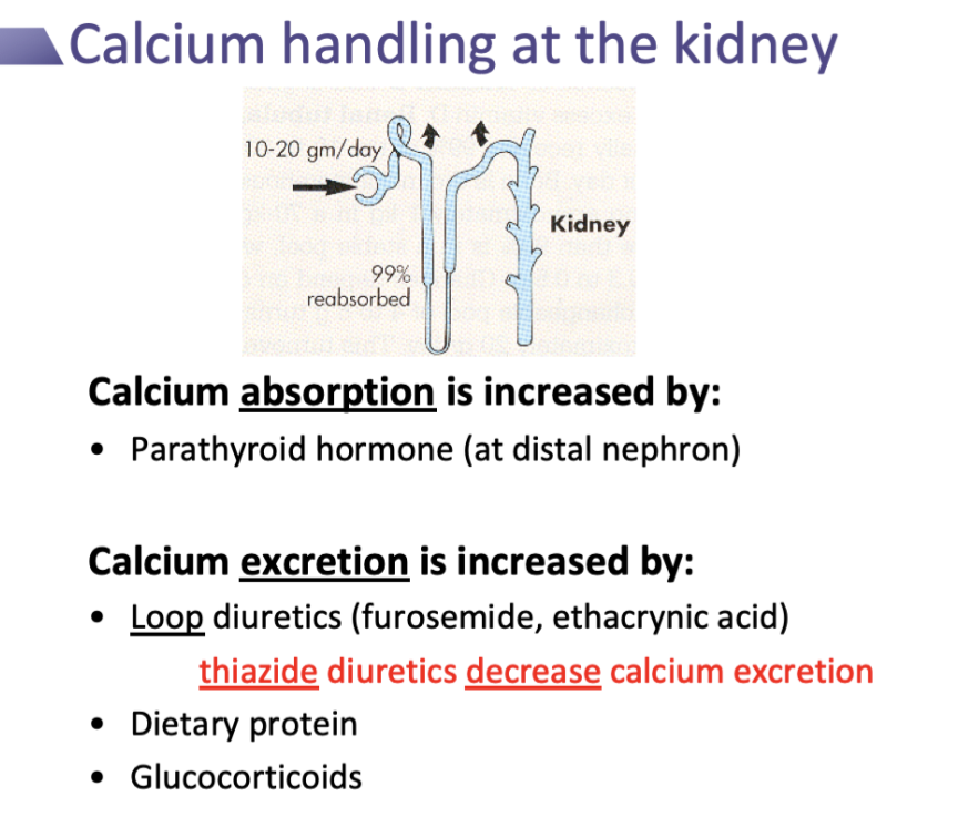 Calcium excretion is increased by loop diuretics, dietary protein, and glucocorticoids