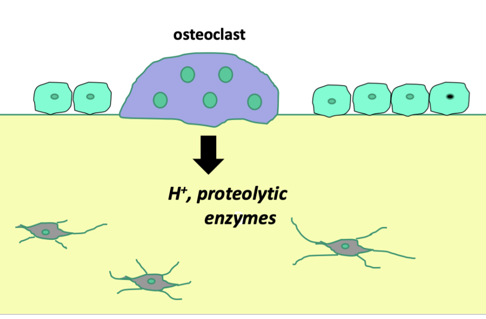 Osteoclasts secrete H+ and proteolytic enzymes to degrade bone