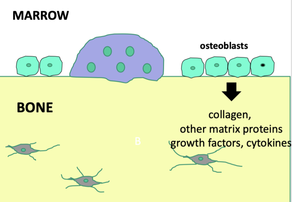Osteoblasts secrete collagen, other matrix proteins, growth factors, and cytokines