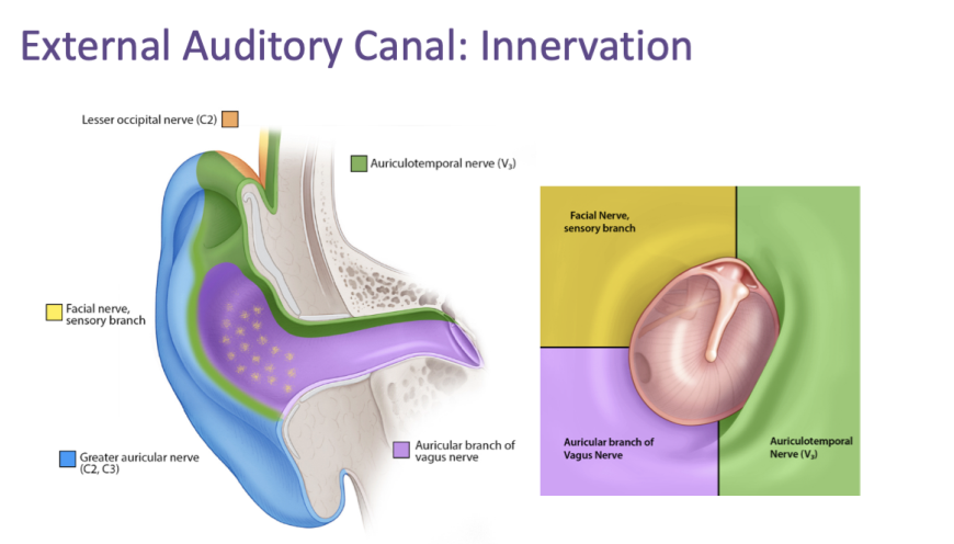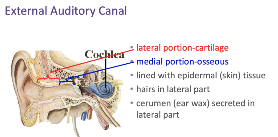 Lateral portion of external auditory canal is composed of cartilage, while medial portion of external auditory canal is composed of bone