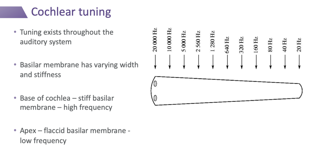 Apex of cochlea has flaccid basilar membrane so frequency is low
