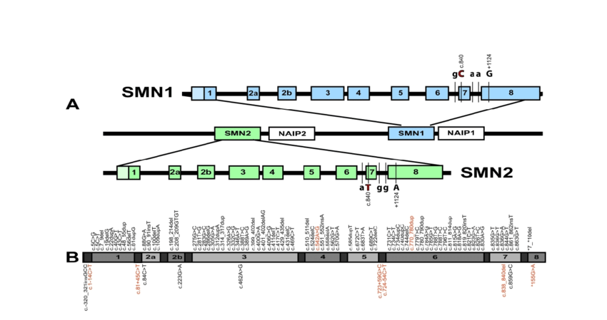 98% delece exonu 7,8 genu SMN1bodové mutace