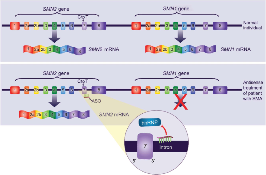 Nusinersen spinraza -syntetický antisense oligonukleotid * který umožní genu SMN2 vytvářet oligonukleotid v plné délce-intrathekálně-do MM*