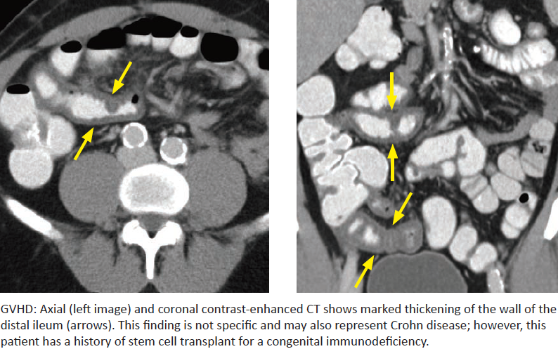 What is the most common food-borne gastroenteritis? What is the CT appearance? Fluoroscopic appearance?