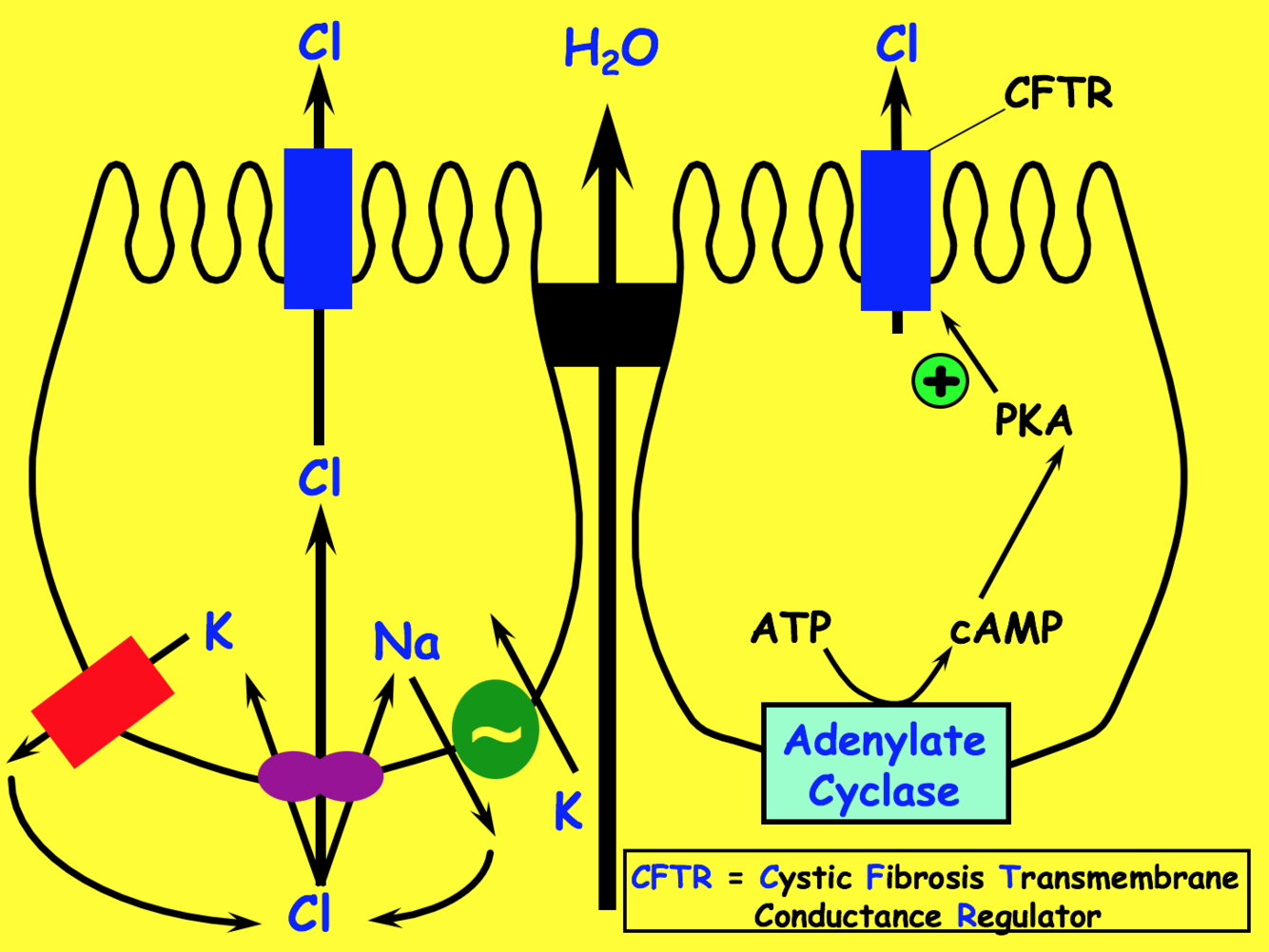 H2O is secreted passively (osmotically) as a consequence of active secretion of chloride into intestinal lumen by the Crypt cells