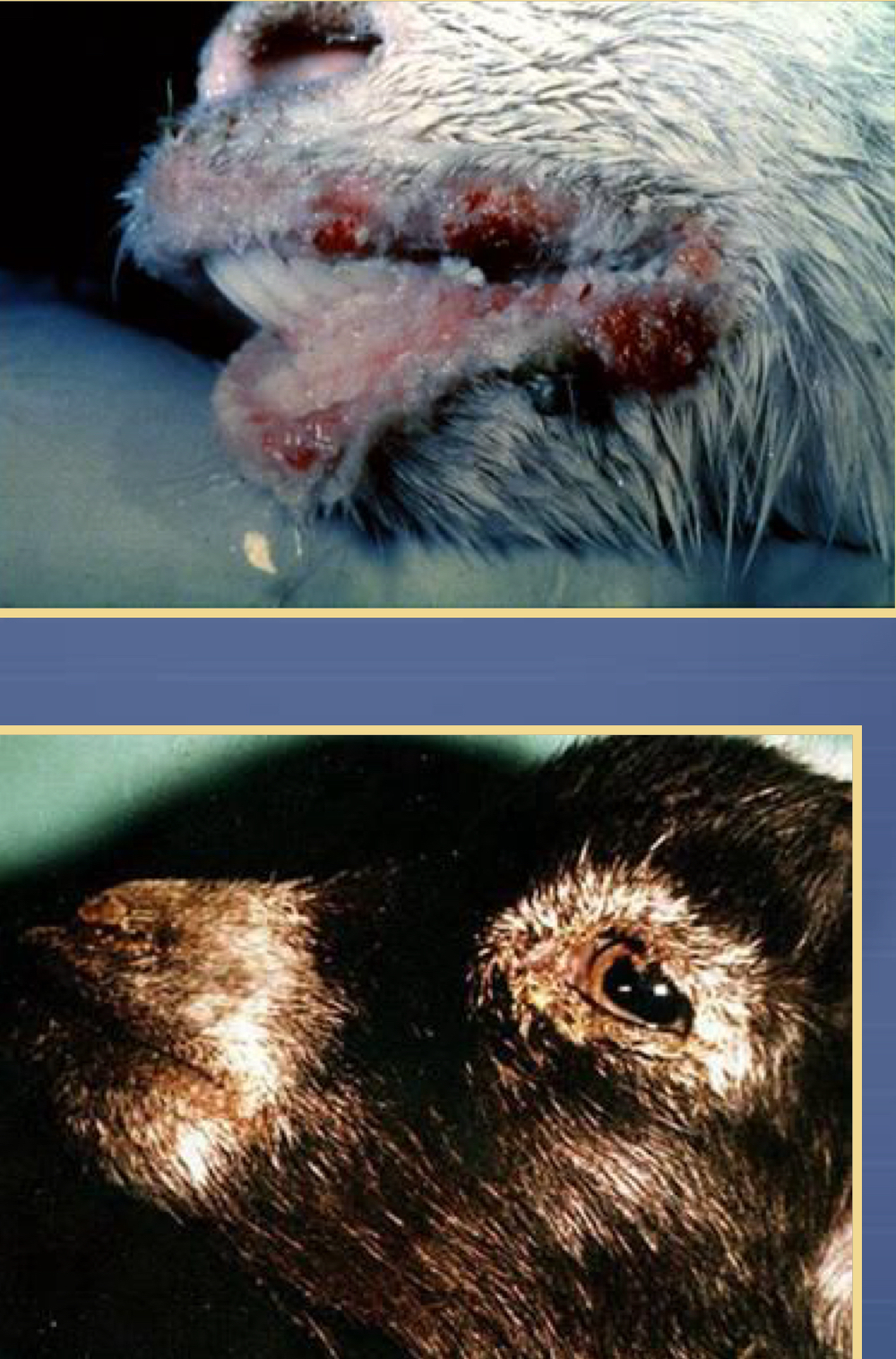 rapid onset of fever, weakness, icterus, mucopurulent nasal discharge, and vomiting