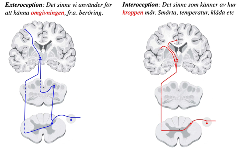 Beskriv dessa olika typer av förbindelser och vad det är viktiga för gällande interoception