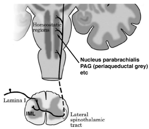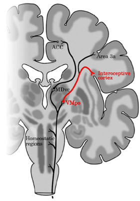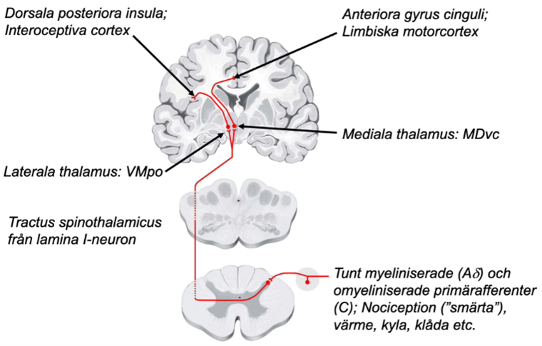 Beskriv övergripande banan för interoception upp till och med interoceptiva kortex och limbiska motorkortex