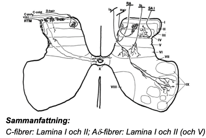 Att de flesta A-delta-fibrer och C-fibrer terminerar i lamina 1-2