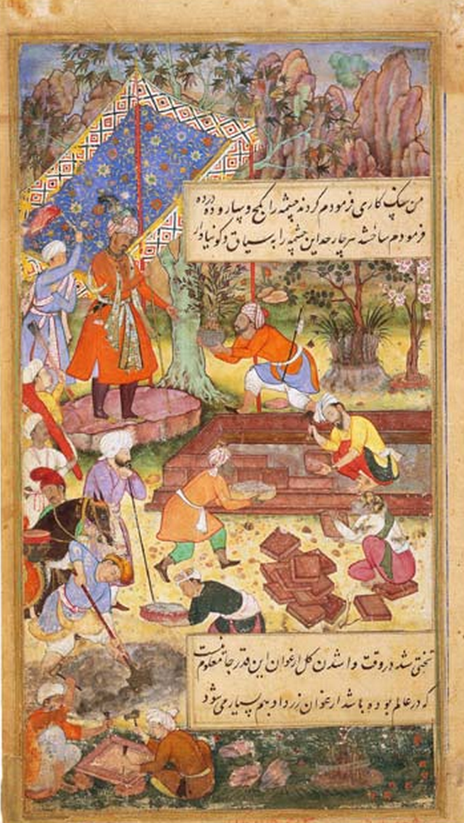 Mughal Emperor (and founder) Babur (1483-1530) supervising the installation of his garden.