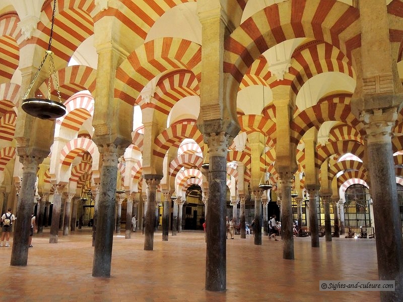 Built on top of Christian city on top of Roman ruins (1st c. Roman temple became 5th c. Christian Church became 7th c. 1/2 church 1/2 mosque became 784 new mosque became 1236 Christian cathedral inside mosque)
