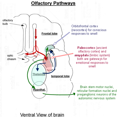 describe the olfactory pathway in higher levels of the brain