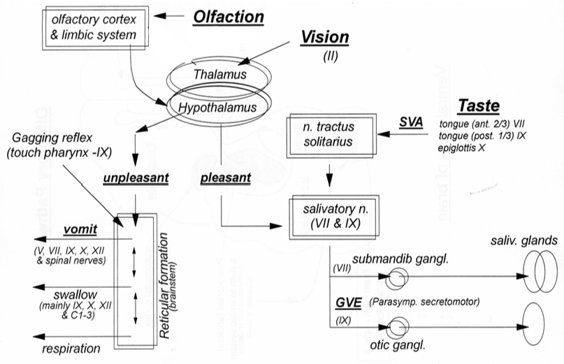 how are olfactory, taste and vision response pathways integrated