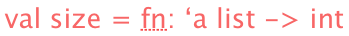 ‘a list is a list of whatever type ‘a is therefore size is a polymorphic function.