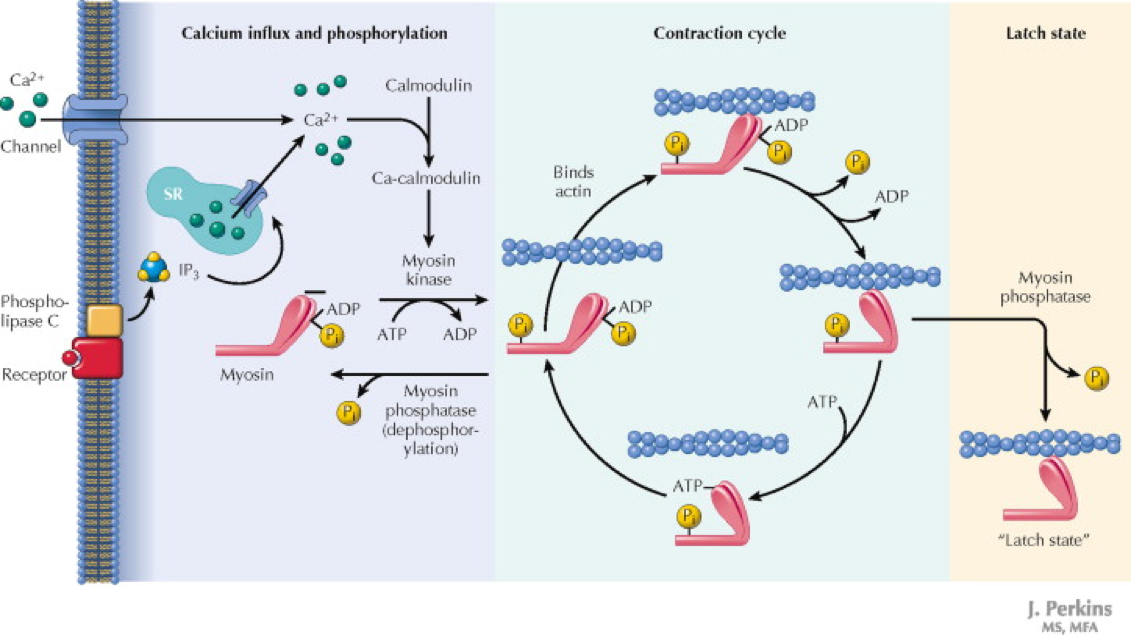 smooth muscle can remain myosin bound (contracted) without using ATP to stay that way