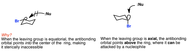 SN2 can only occur on a cyclohexane when the leaving group is Axial because …