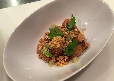 Kung pao sweetbreads, sweet pepper jam, peanuts, pickled celery