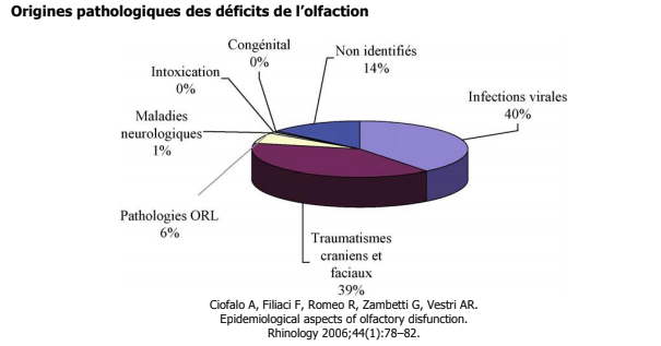 pathologie vient de deux observations. D‟une part le pourcentage de déficit olfactif lié à la
