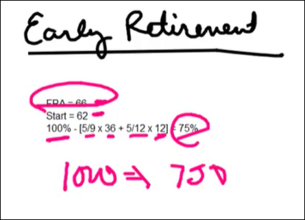 Ex: Jill’s normal retirement age is 66 but she decides to retire early and volunteer at her local church. She takes her social security retirement benefit at age 62. What percent of her retirement benefit will she receive?