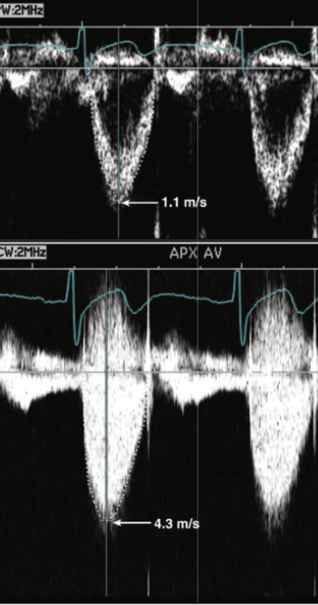 Peak AV velocity is severe; velocity ratio is moderate