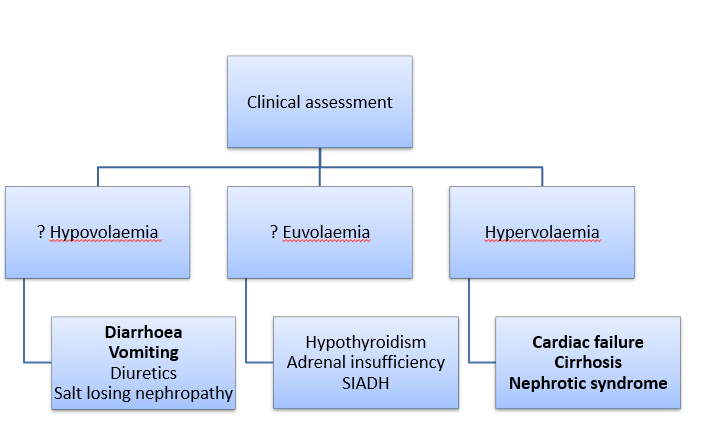 What is the first step in the clinical assessment of a patient with hyponatraemia?