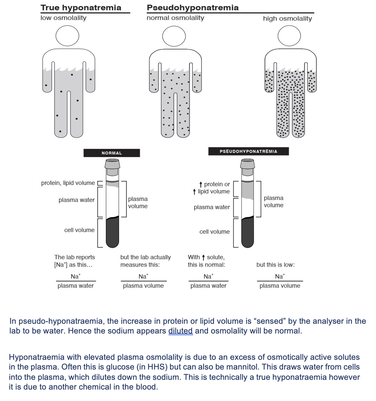 Compare true and pseudo hyponatraemia