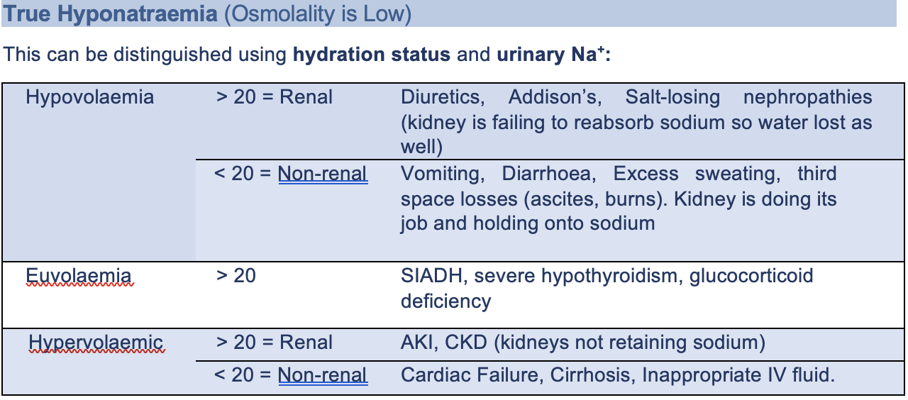 How to distinguish causes of true hyponatraemia