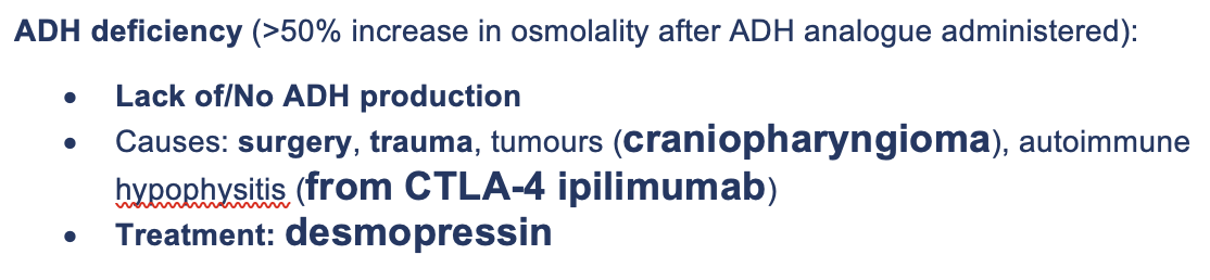 Summarise ADH deficiency