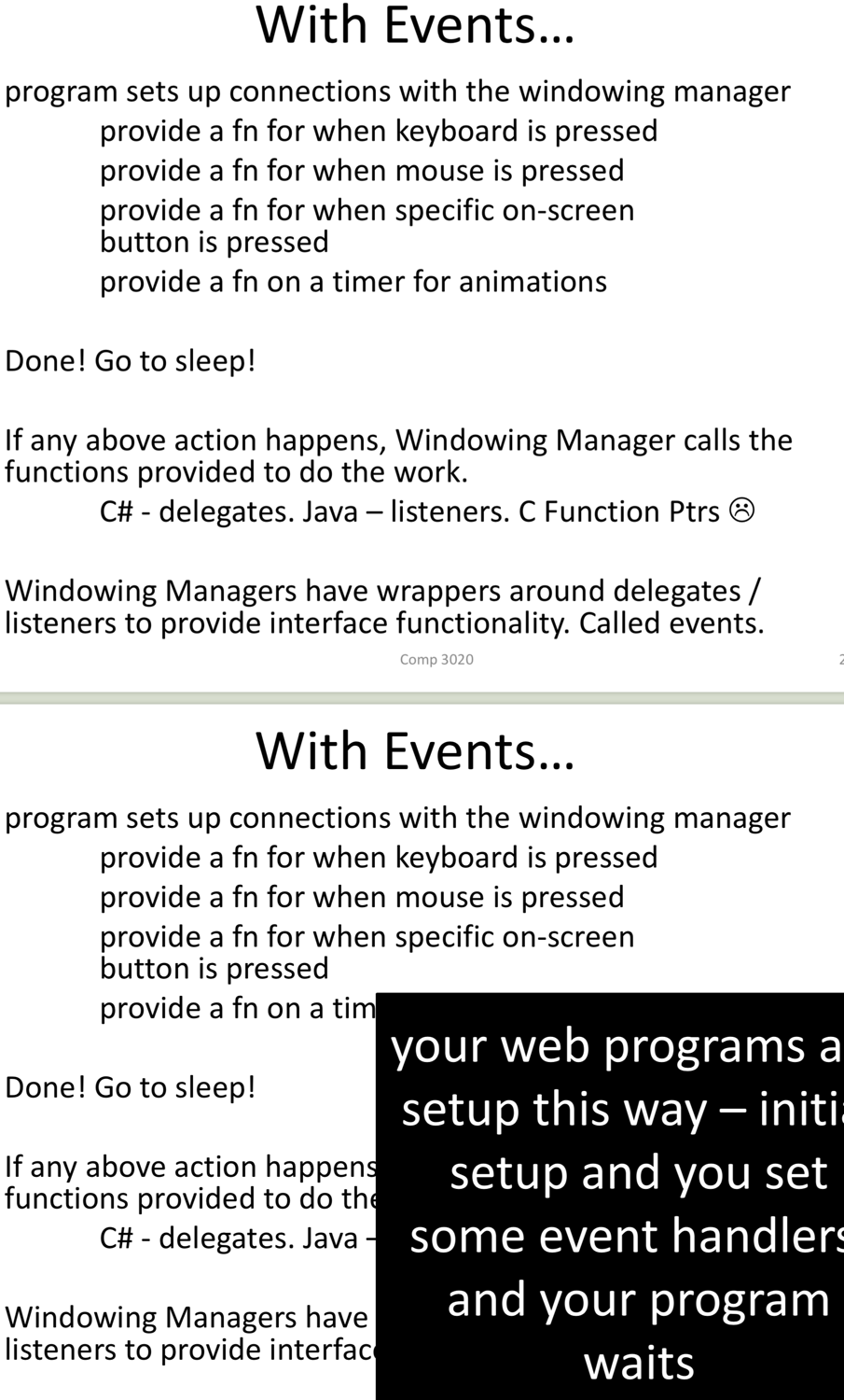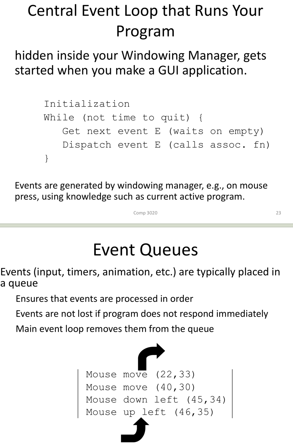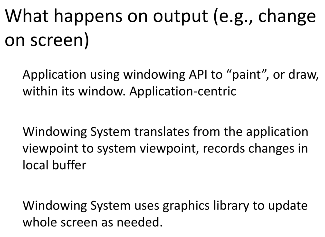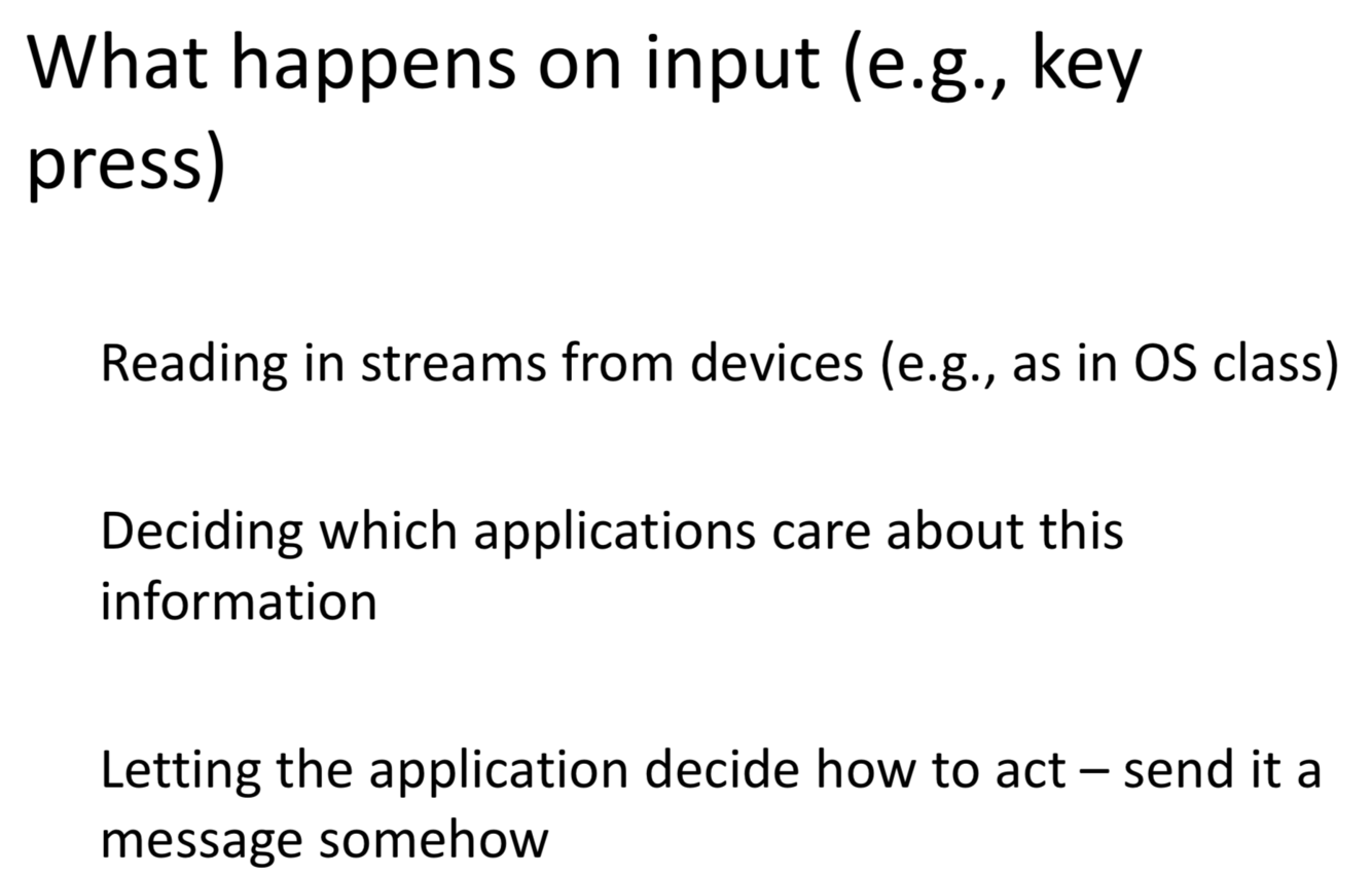 For windowing systems, what happens on input?