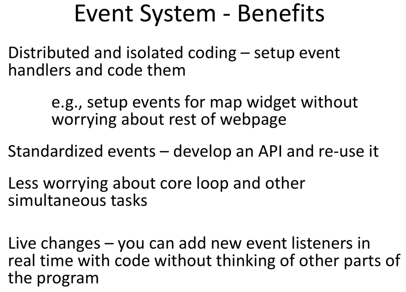 In general, what are the event system benefits?