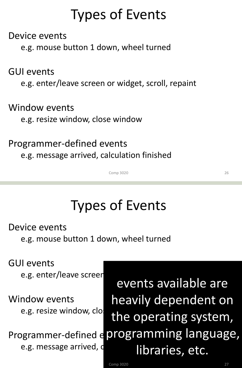 What are the types of events?