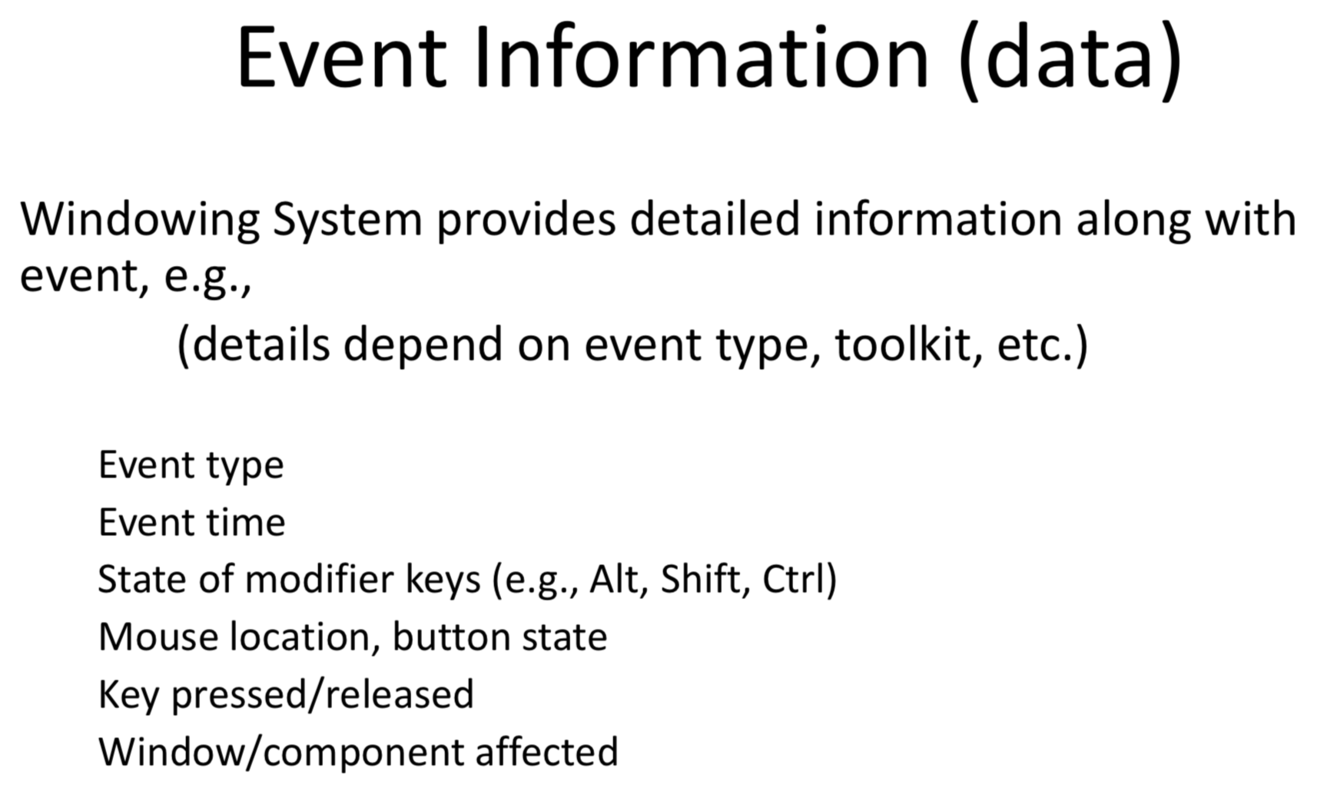 What is the information stored for events in a windowing system?