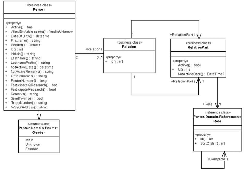 Relaties worden weergegeven in het Klassendiagram.