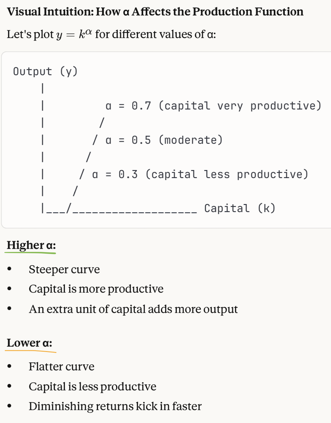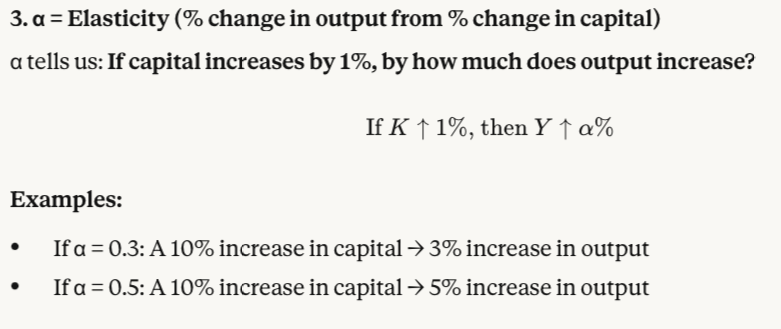 Think of α as measuring how important capital is in producing output.
