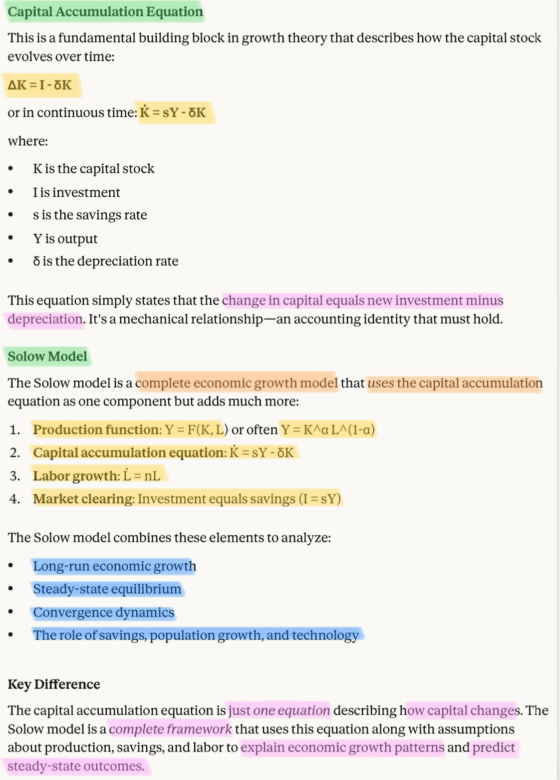 difference between the Capital Accumulation Equation and the slow model