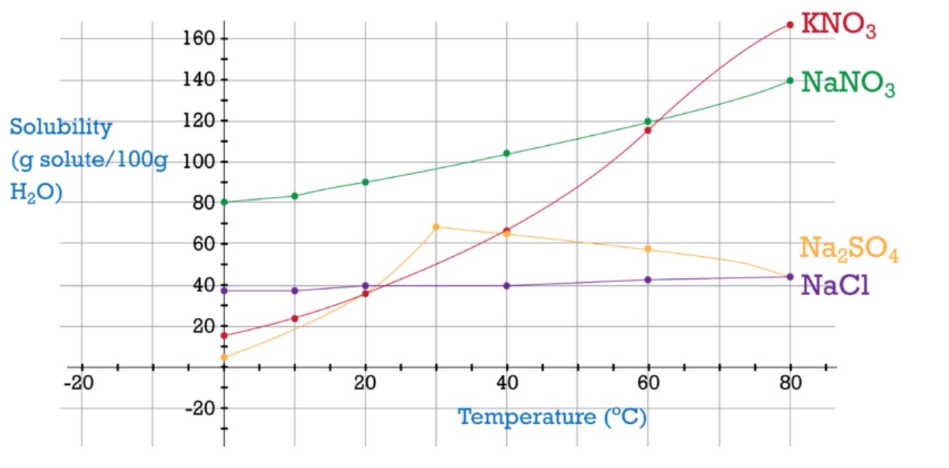 Which temperature does KNO3 need to be at to dissolve roughly 115 grams