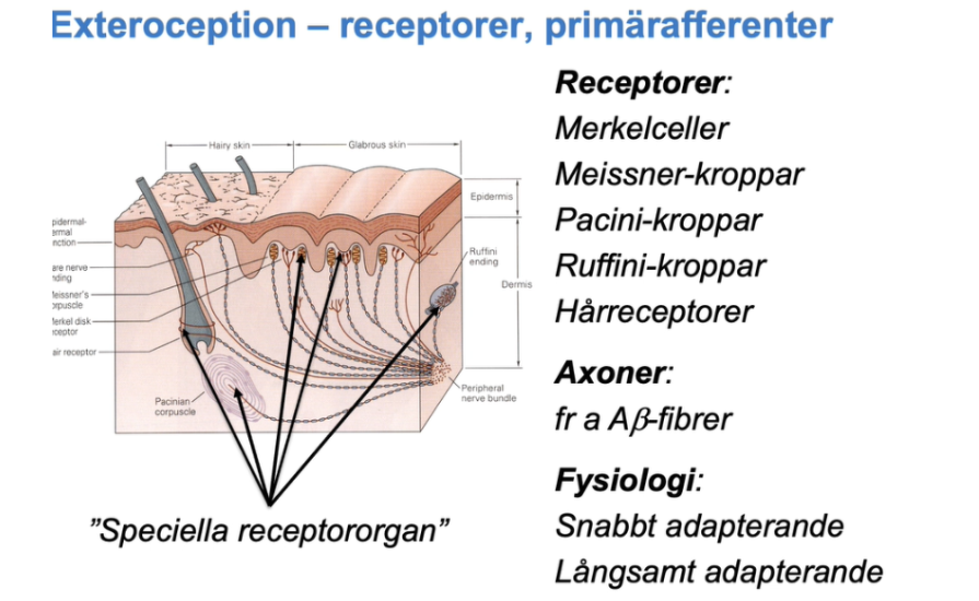 Vilka receptorer finns det för exteroceptionen?